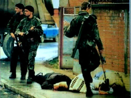 taken by Ron Haviv, an American war reporter, during the Balkan conflict of the