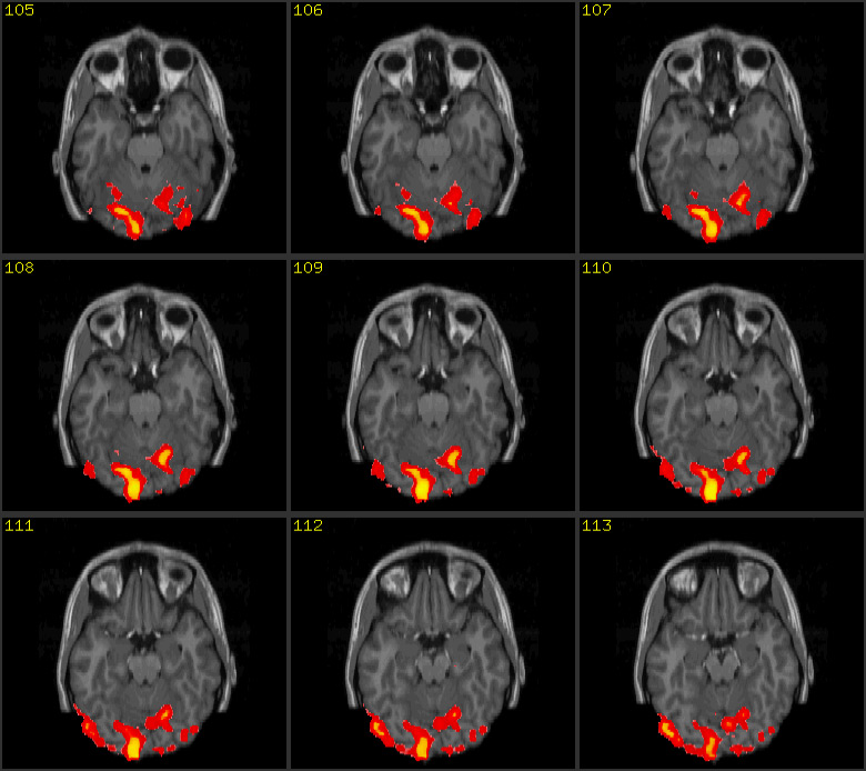 I am more interested in juxtaposing two procedures of creating and approaching images, the one followed by Godard and the one followed by those who obtain and read brain scans with the help of biomedical imaging, to see how these two procedures let images guide us, let images function as arguments. As we have seen, Godard adopts a technique of montage (the anti-montage) within a single still image. He moves horizontally on the surface of the image, framing different parts of the picture, focusing on fragments, on small details in close-up. He deconstructs, anatomically, the original photograph in a series of images that bear meaning on their own but whose meaning, at the same time, changes when each fragment is re-assembled to form the original picture. Godard treats the image as a series of layered elements that are not purely visual (we should remember that words superimposed on screen count as images too in Godard) and that can be put in relation one with another. In Godard the different layered images (sound, image, text) are worked separately and then put back together. On the opposite, the reading enacted on a brain scan is a surface scanning, but layers are piled up vertically, they are added onto the image for the single snapshot alone does not make sense. It is the ensemble of layered scans that constitutes the image.